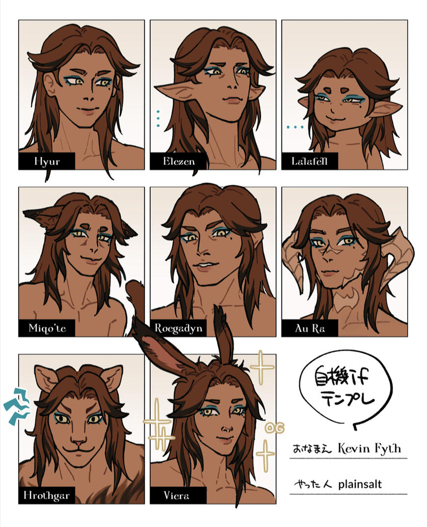 Rough headshots of my Final Fantasy XIV character as all the playable ingame races